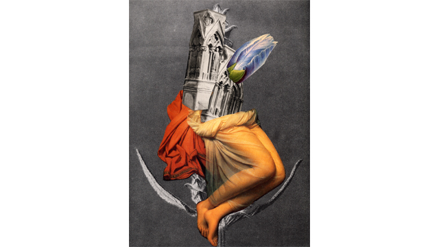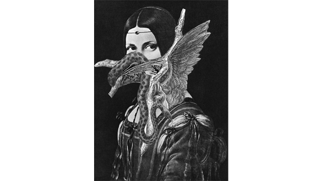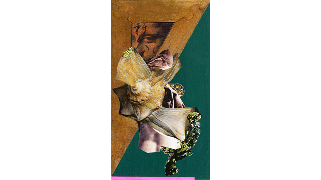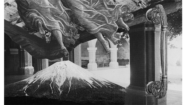 無謬の論理 Perfect Logic : 12 x 11 cm Collage 2009 「是蘭が作り出すコラージュは、例えば都市図の上に刺された一本の鋭い針のように、私達を観念上の犯意へと誘っていく - 美術家 北川健次」